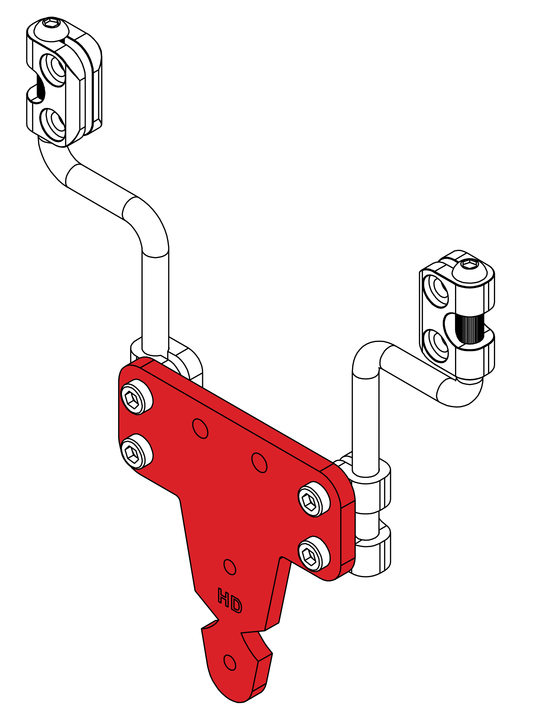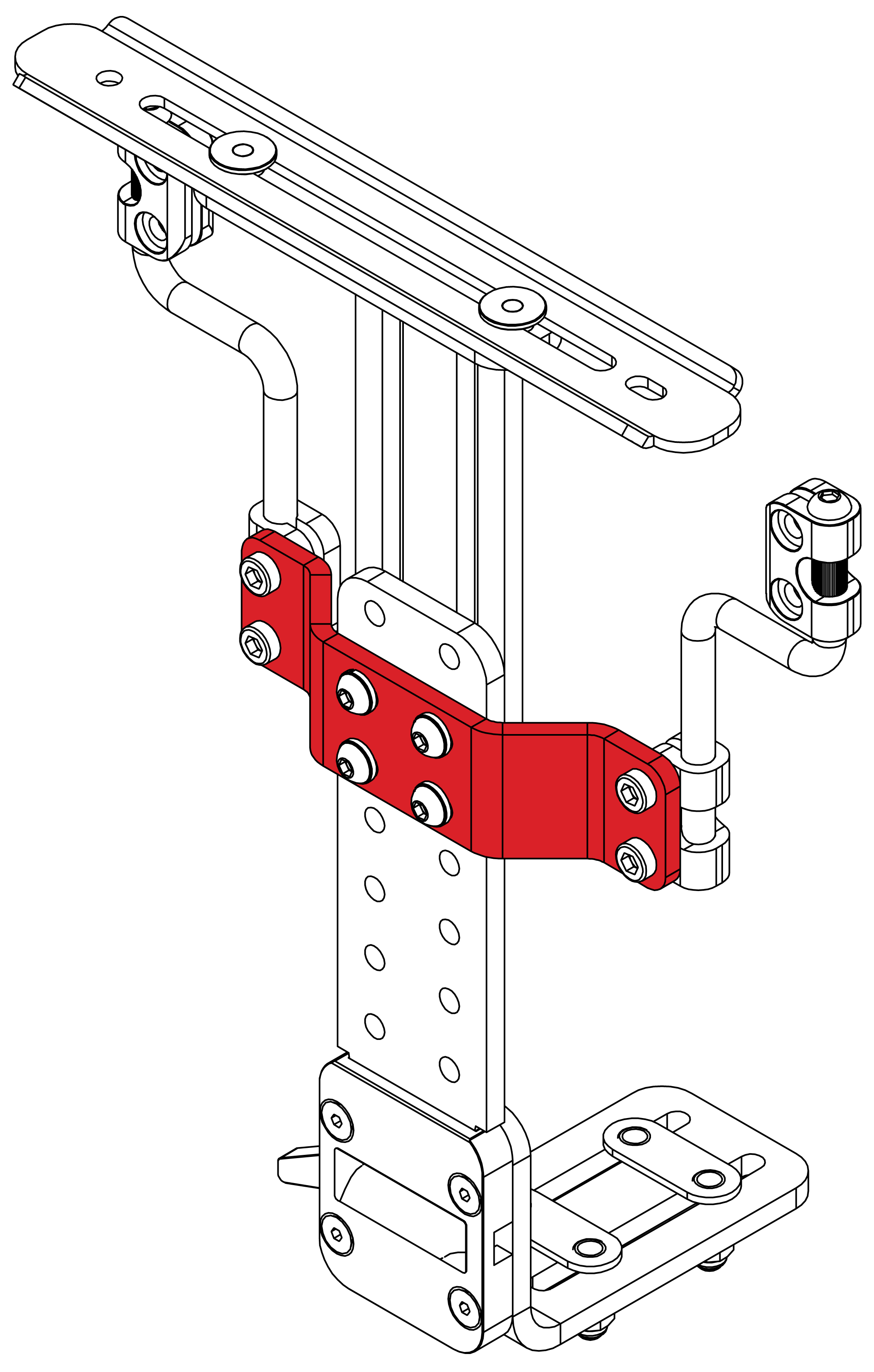 The Combo High Mount allows increased height adjustment for Axial Thigh and Arm Combo Hardware. This hardware option maintains the benefits of axial positioning while enabling the thigh pad to be positioned higher to accommodate higher cushions. They also feature an extra-strong clamp to lock the thigh pad in place.