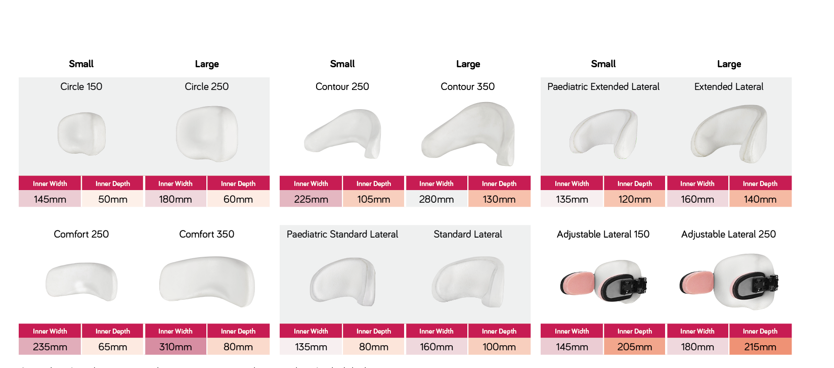Complete head support pad specifications can be found on our website.
