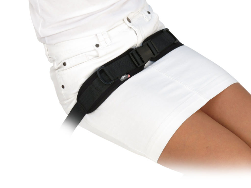 The Dual Centre Pull tensioning function of the hip belt is easy to operate for both the user or caregiver and tensions on both sides by pulling on the straps either side of the buckle. This suits clients requiring greater adjustment range and to accommodate varying layers of clothing etc.