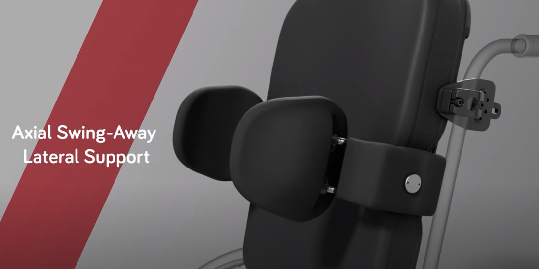 - The lateral trunk support allows for angle adjustment within the pad due to its patented pivot-link system – essential to graduate positioning and comfort.