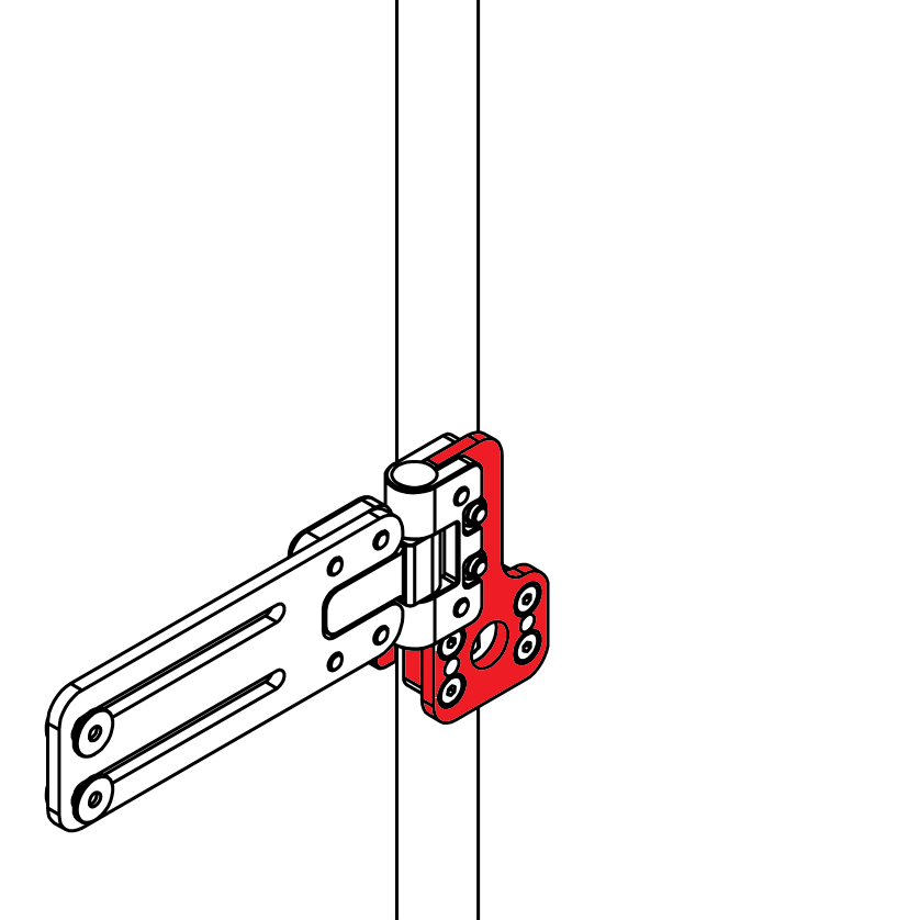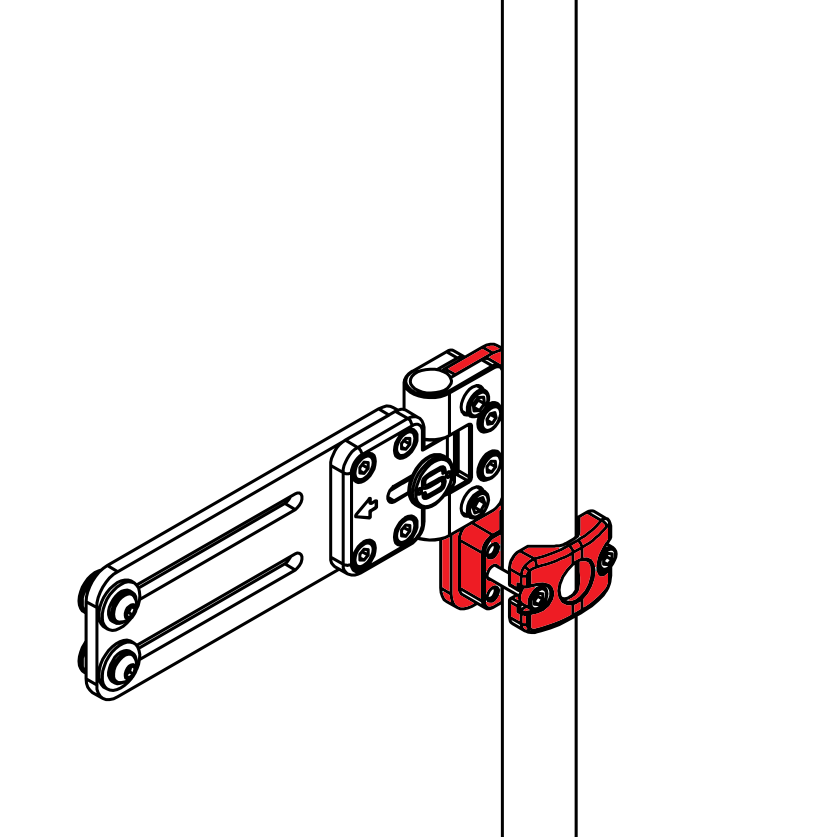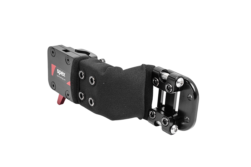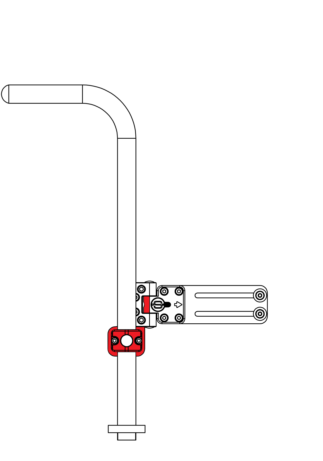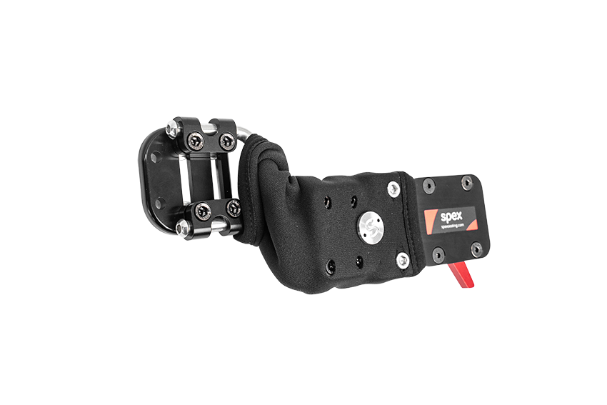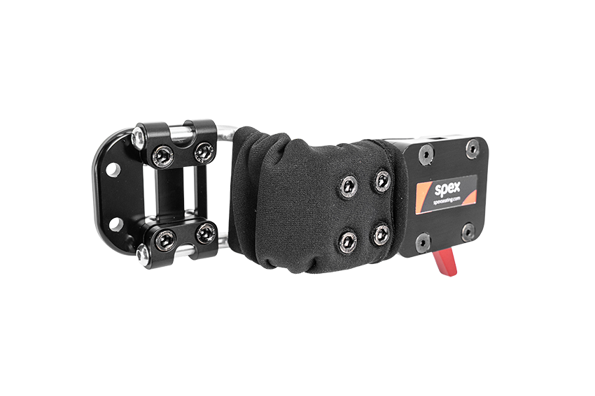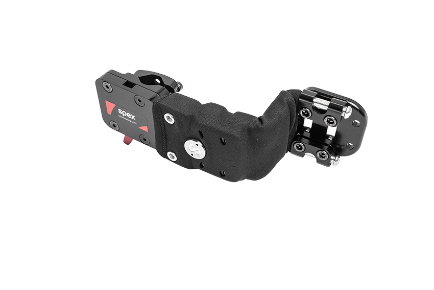Fits to 25mm diameter round tubing, and attaches to either the Spex swing-away lateral bracket or the Spex Axial swing-away lateral bracket.