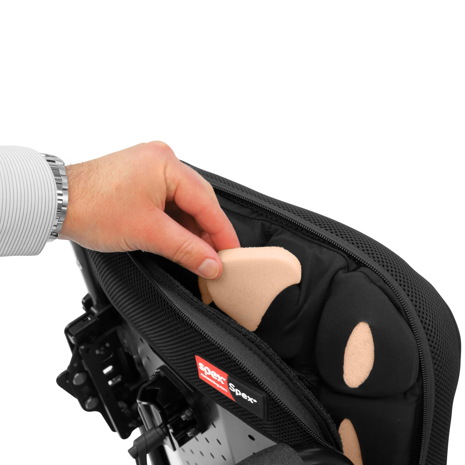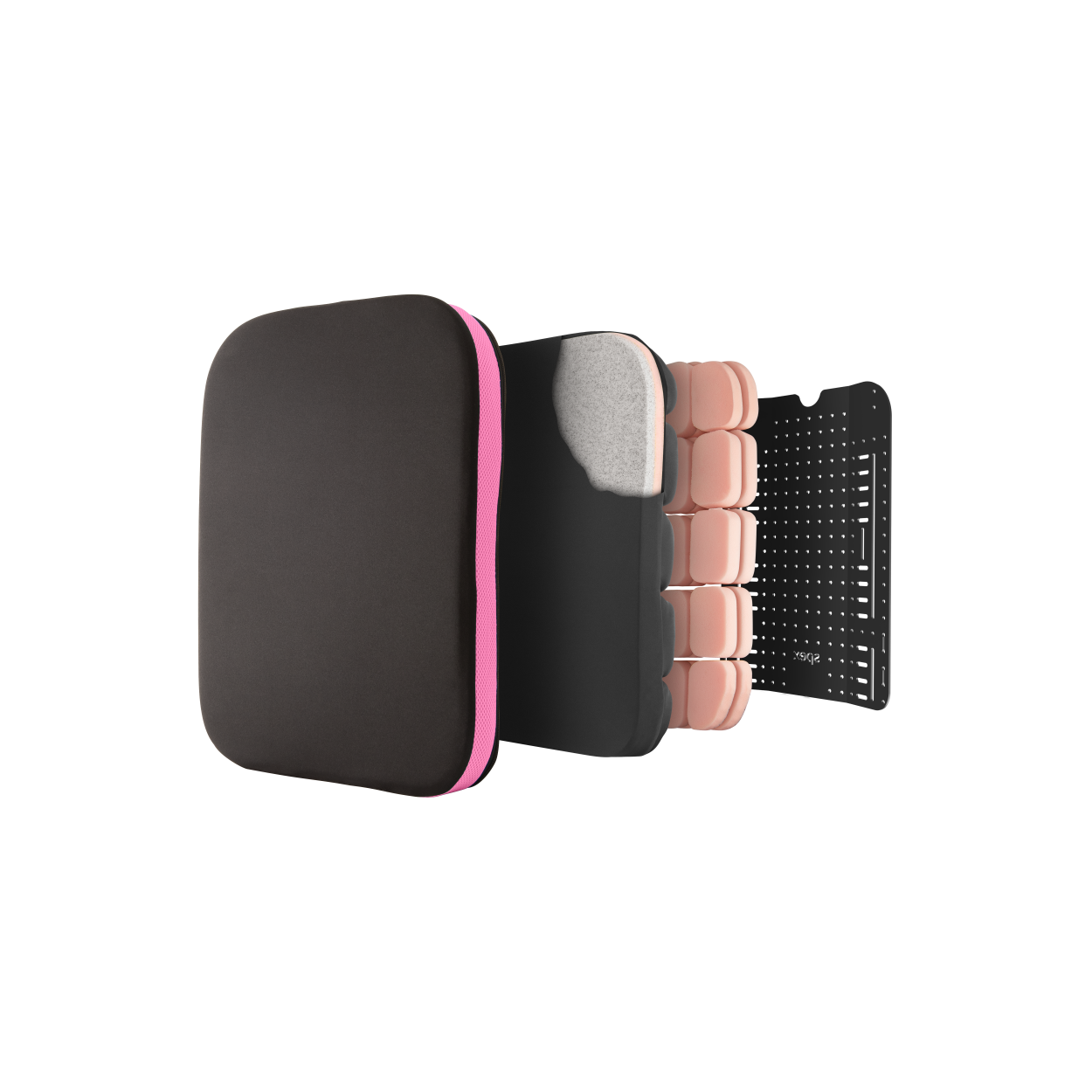 Further postural enhancements to the degree and depth of contouring are achieved with the positioning kit of support wedges (included with every Spex back support).