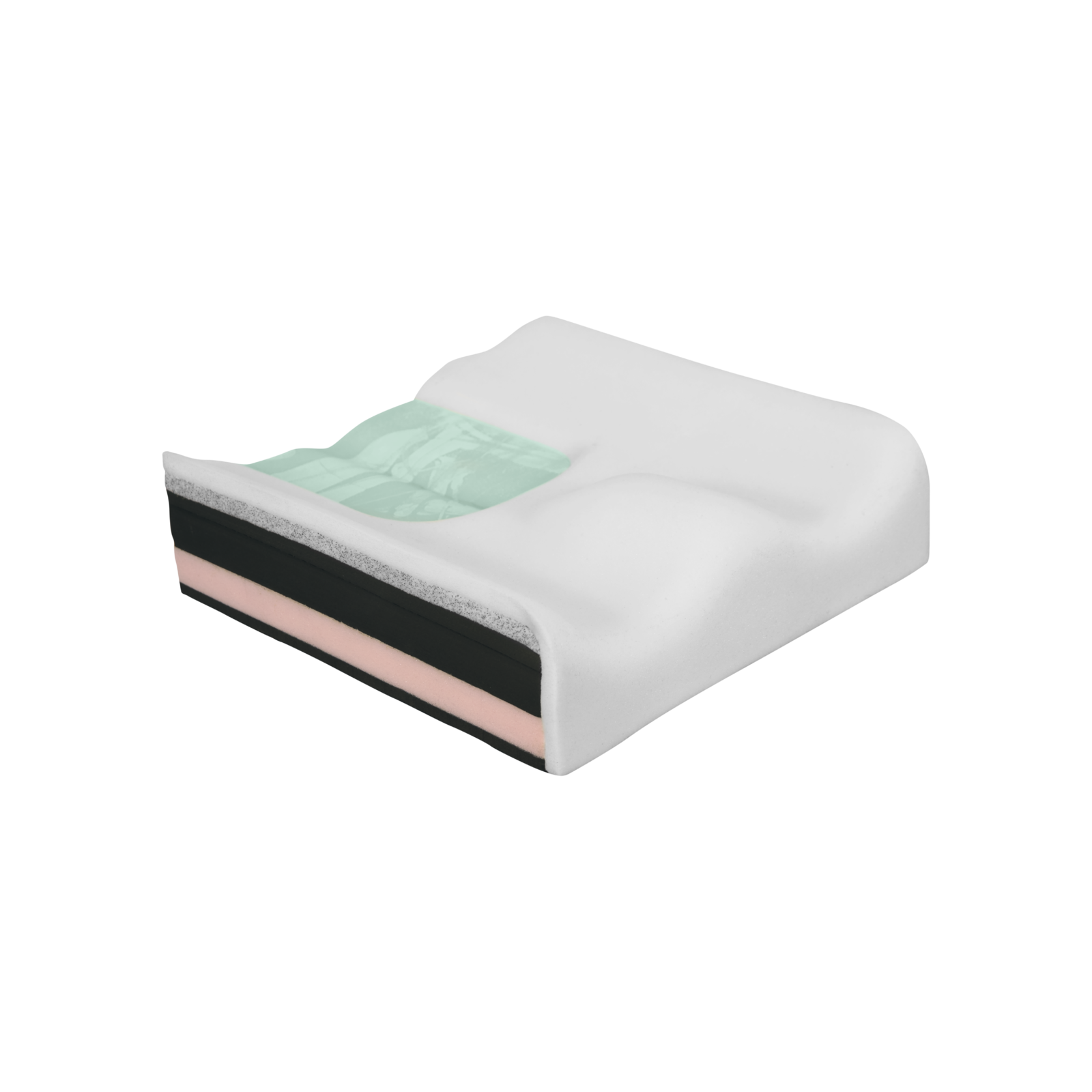 • Coccyx channel for enhanced pressure relief (for sizes 16” +)
