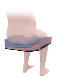 It’s properties provide hip/leg envelopment as well as an ideal pressure redistribution all over the seat cushion. The medial thigh support combined with lateral thigh supports maximizes the user stability, providing greater balance and support on upper body.