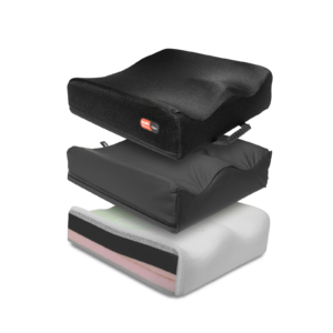 • Dual-layer cover reduces shear forces, and breathable air-mesh on cushion sides counters moisture