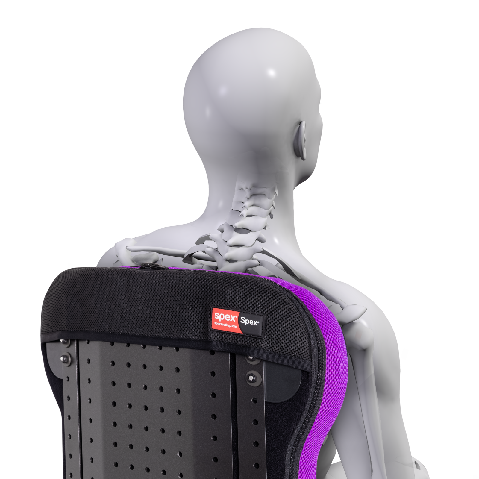 Further postural enhancements to the degree and depth of contouring are achieved with the positioning kit of support wedges (included with every Spex back support).