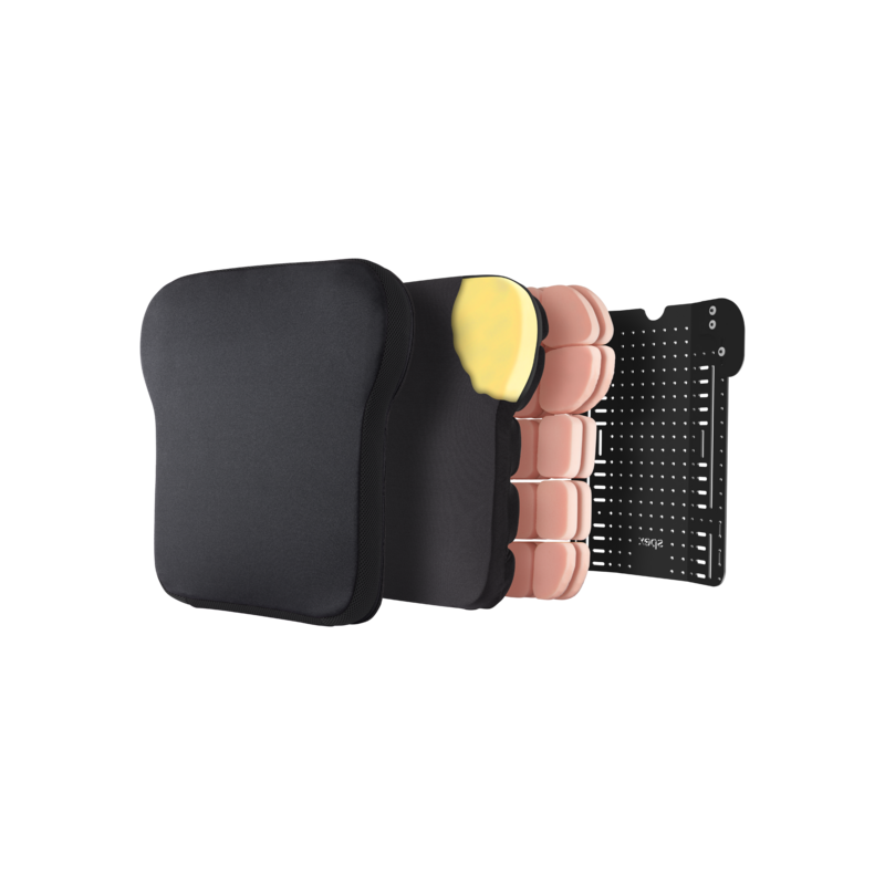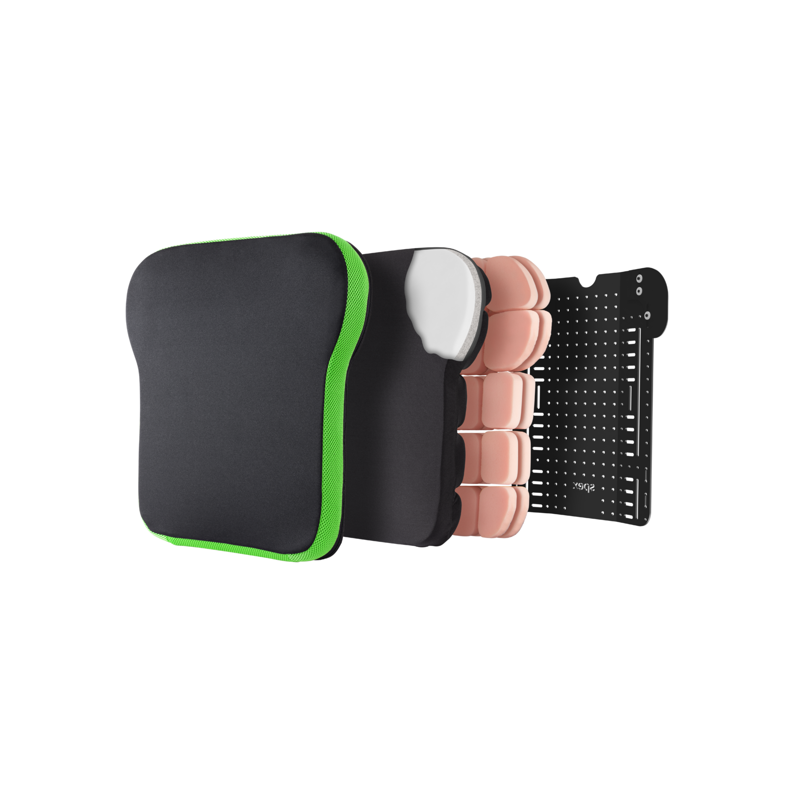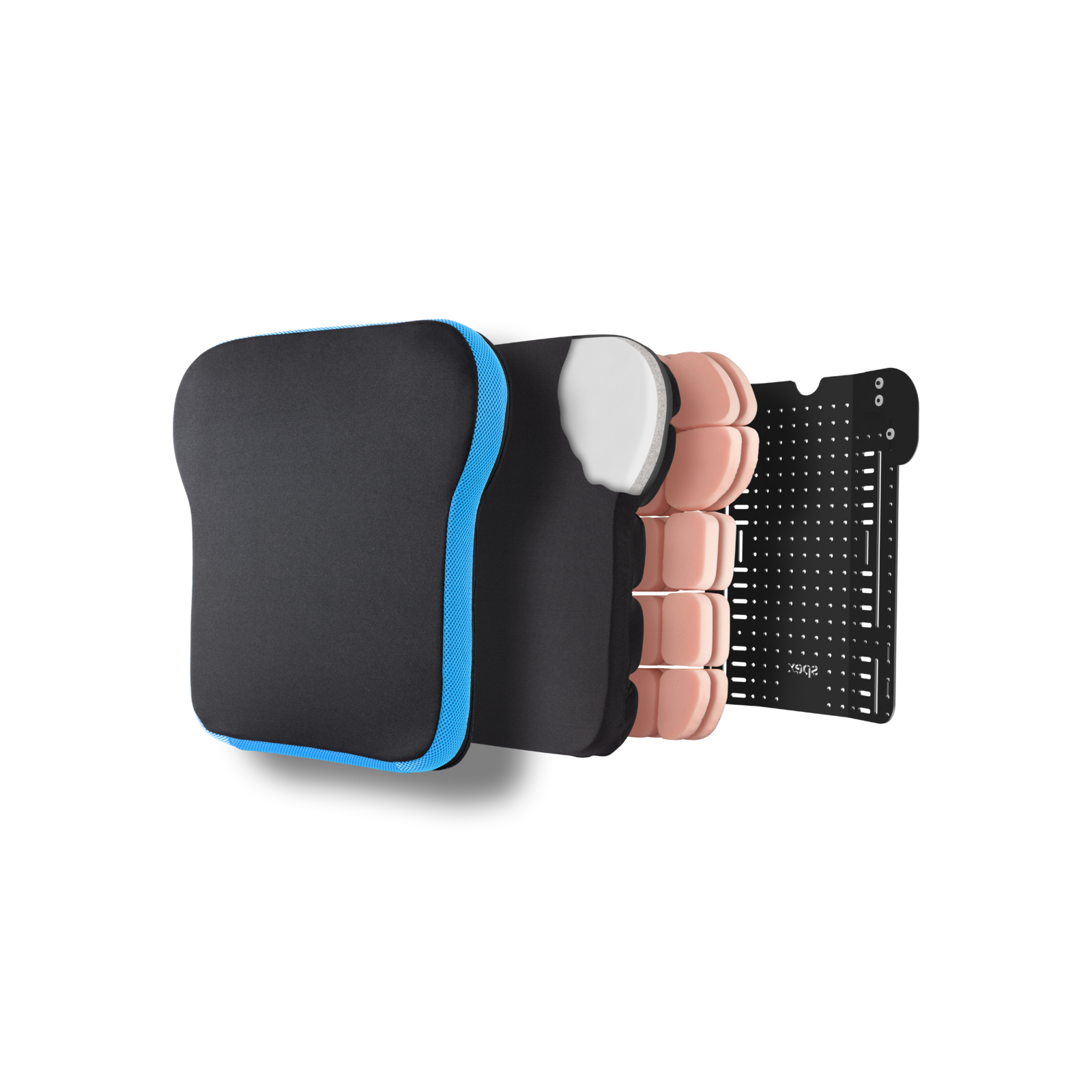 Without even adjusting the cube system, the Spex back support has slight contouring and integrates a comfortable pressure reducing foam surface layer to absorb mild bony prominences and asymmetries for uniform torso contact. |