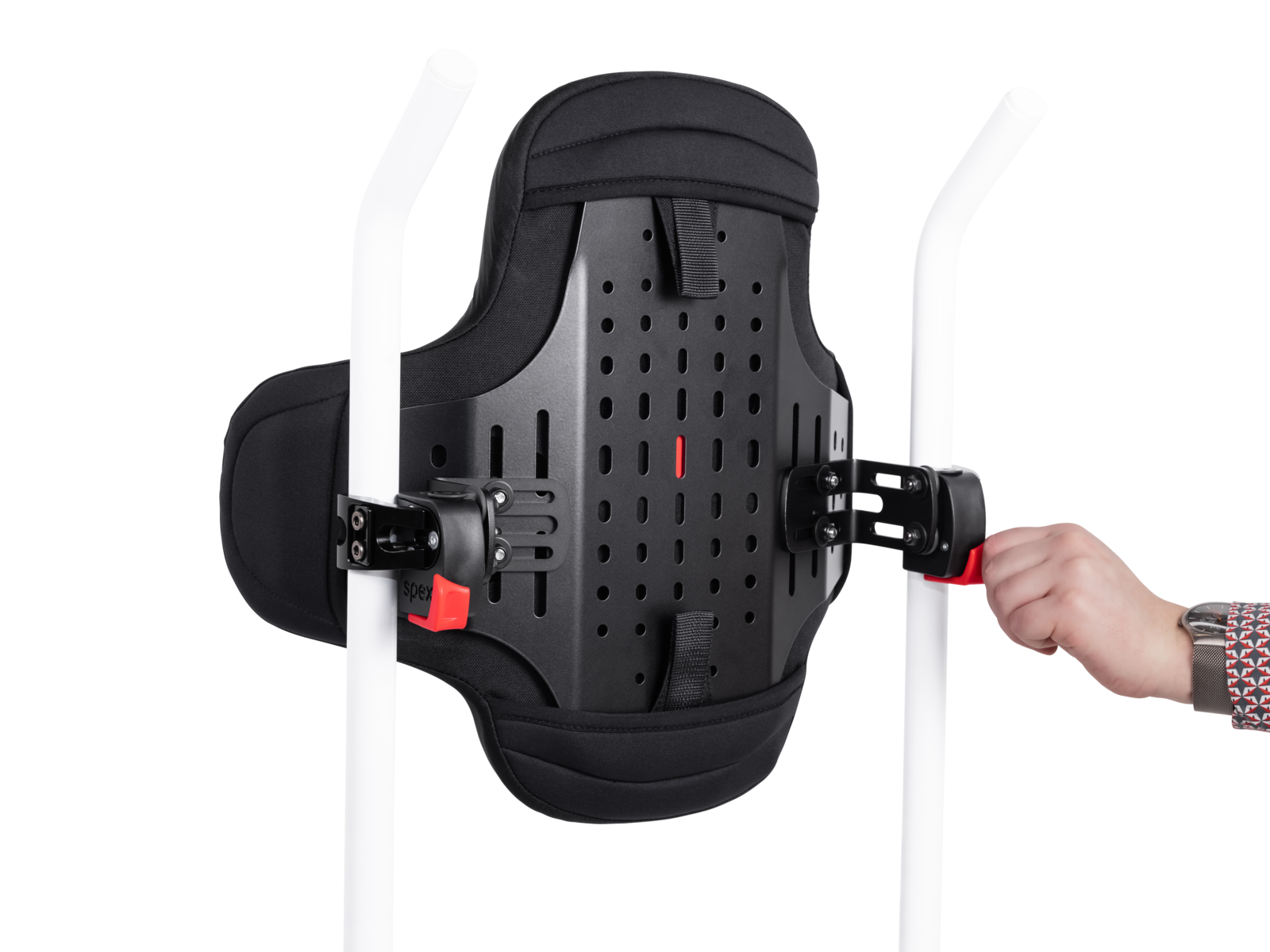 The lightweight Drop Mount hardware is simple to operate with a single combined clamp and mechanism unit. The release mechanism is simple to operate, and suitable for single-handed use, and those with limited hand function. The hardware gives plenty of adjustability and rigidity and can be used on a wide range of wheelchair frames.