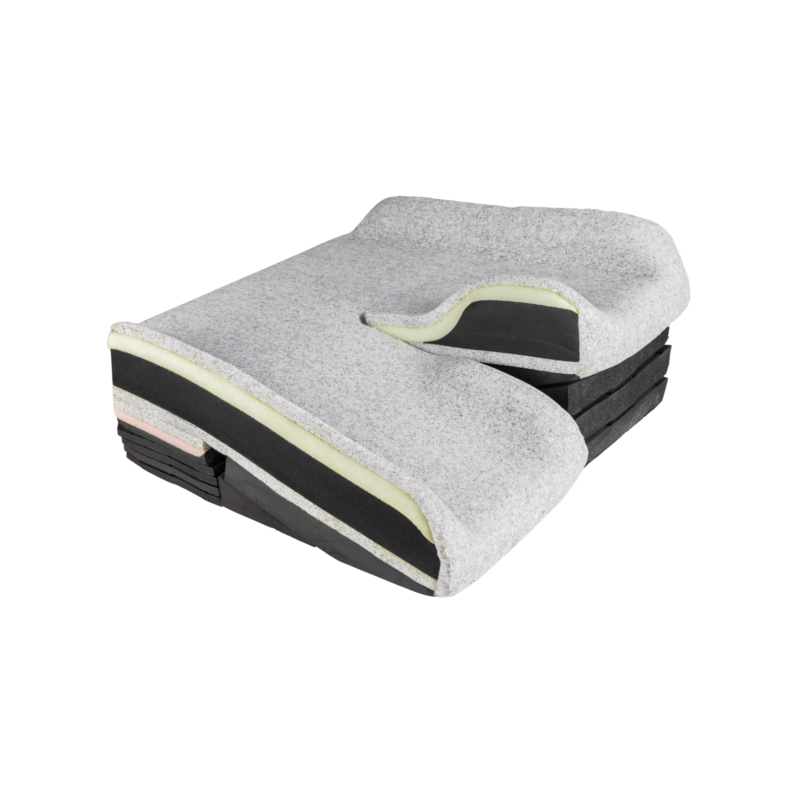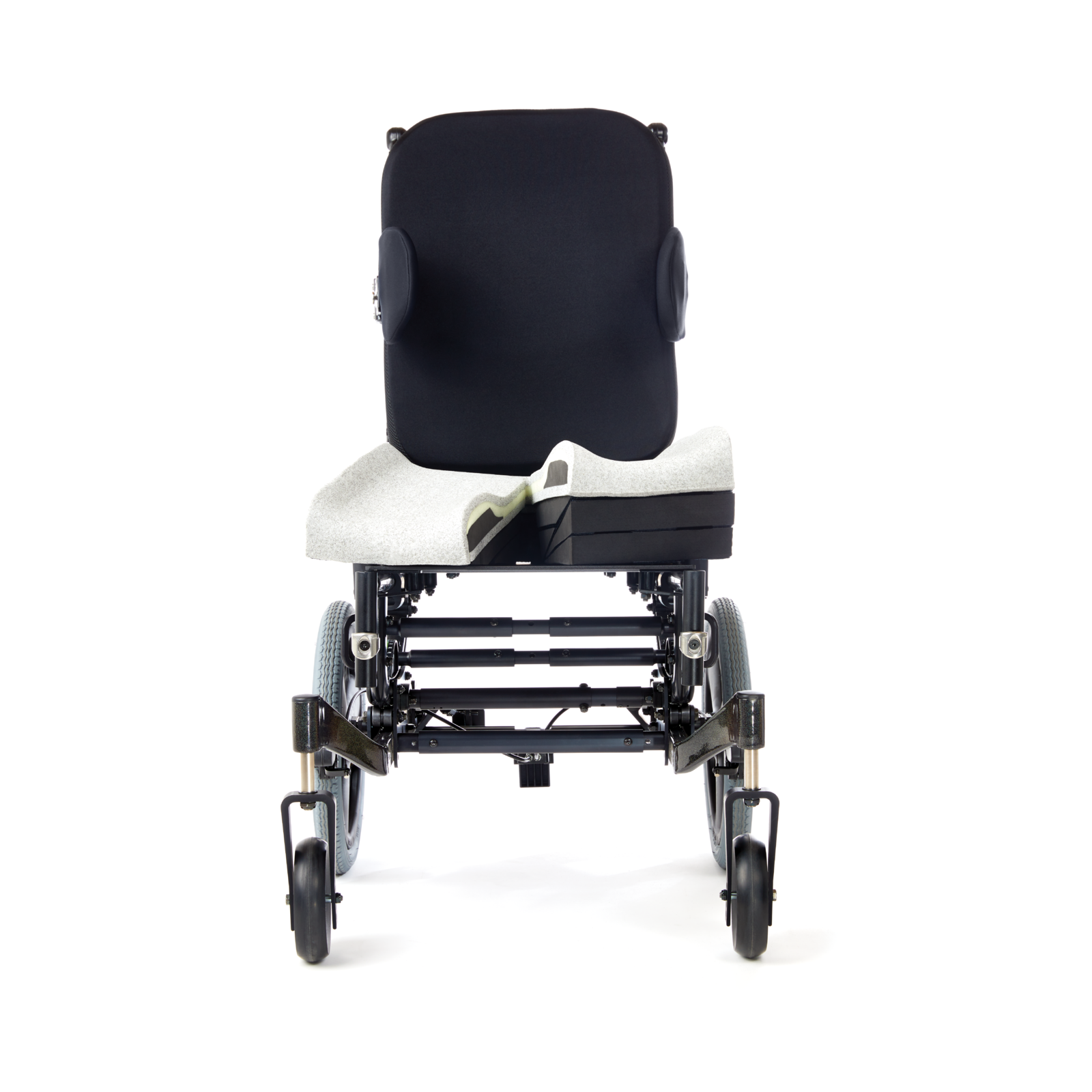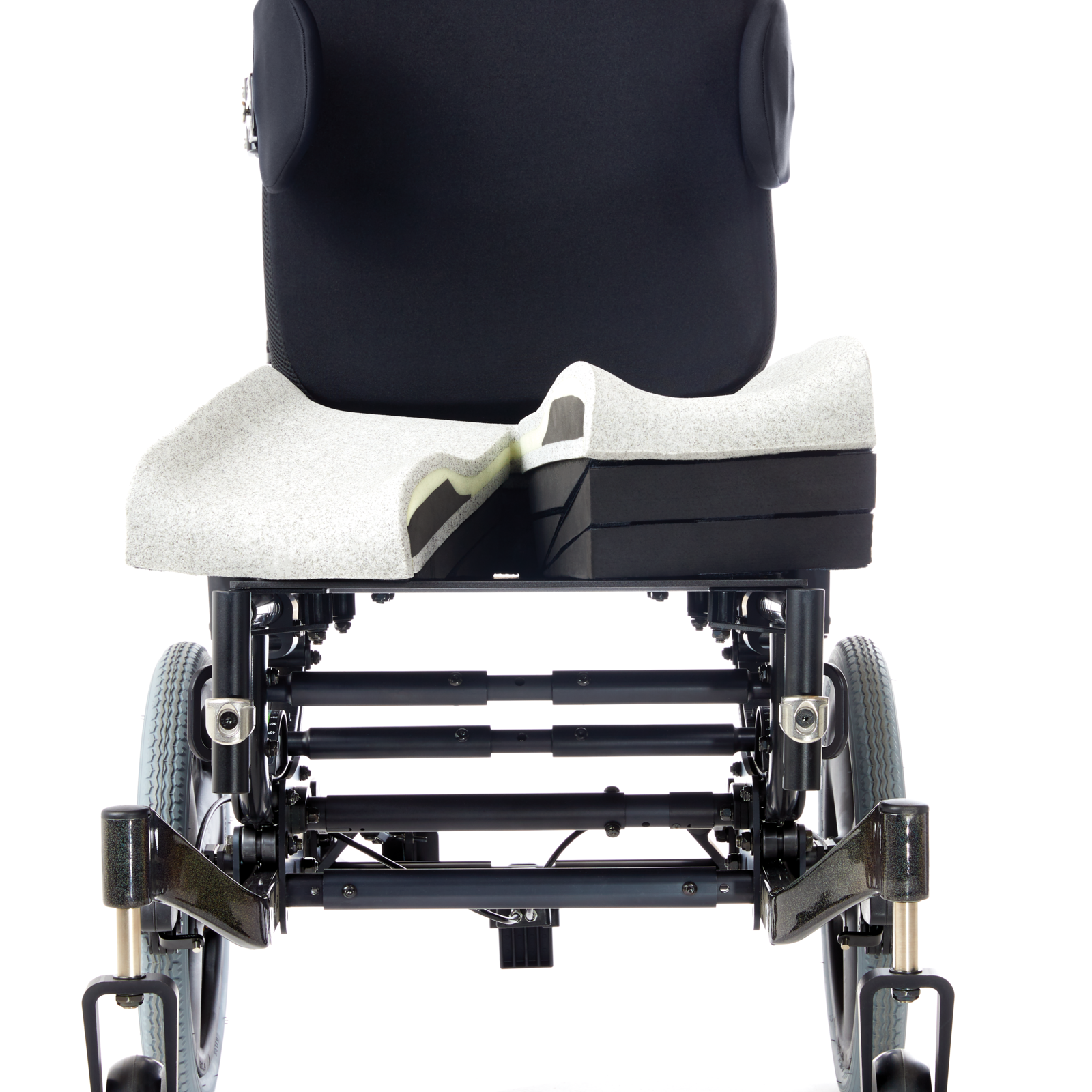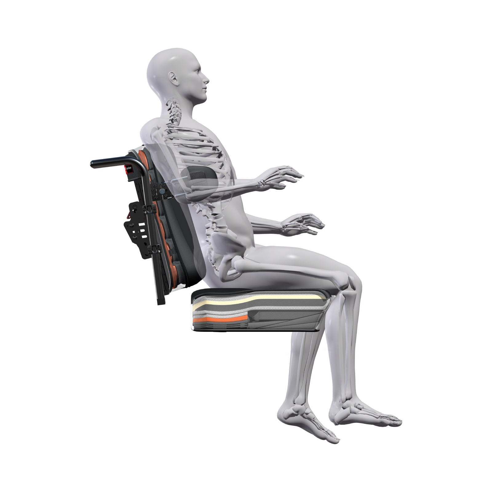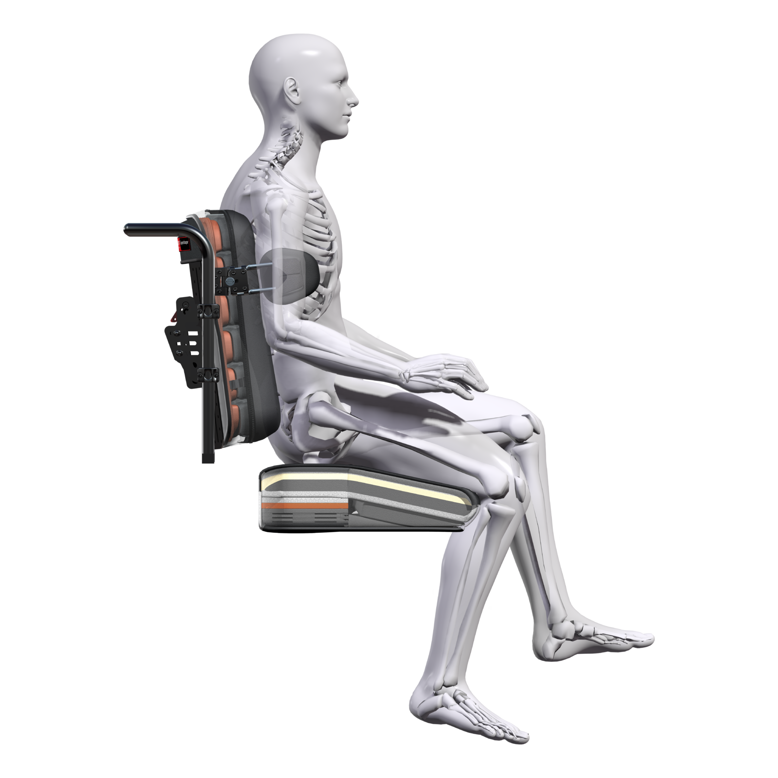 Considering a lack of products available that can support clients with symmetric or asymmetric limited hip flexion, and considering the negative impact that this can have on people’s posture and function, we have developed this superior, comfortable, pressure relieving, stable and highly configurable cushion able to address even the most challenging postural requirements.
