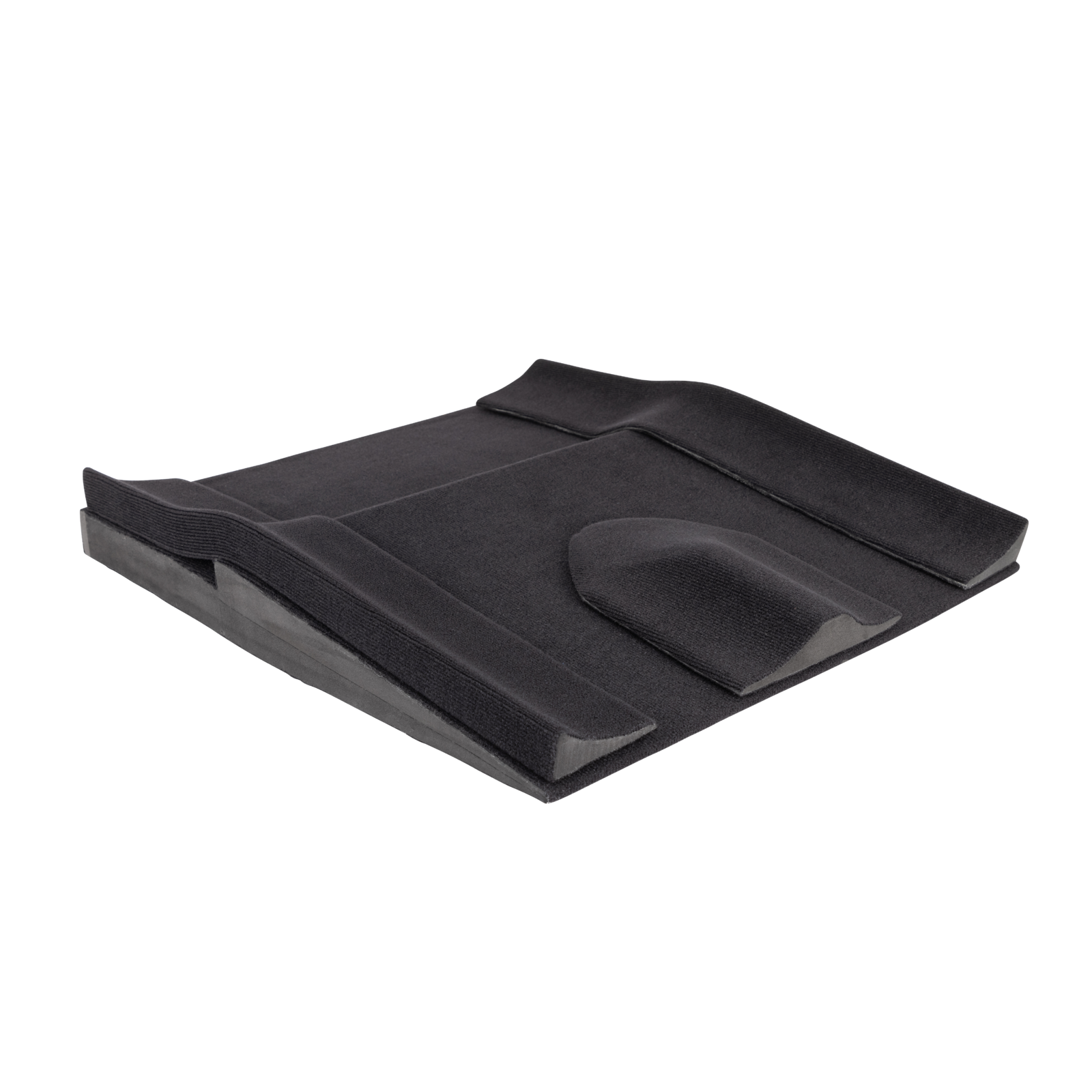 This is an ideal solution for users that have limited hip flexion and require the front of their cushion to be “ramped” downward slightly. The angle is fixed at 10°, however this can be slightly reduced or increased with the use of the Velcro contour pads and Tessellated Shape System pads. Moderate asymmetrical hip flexion limitations can also be accommodated by adding the Velcro contour pads under one of the user’s thighs to raise it up slightly in comparison to the other thigh. Similar to the Ischial Contour Universal Positioning Base, this also features a pre-ischial ledge to support the user’s pelvis and prevent them from sliding forward on the cushion.