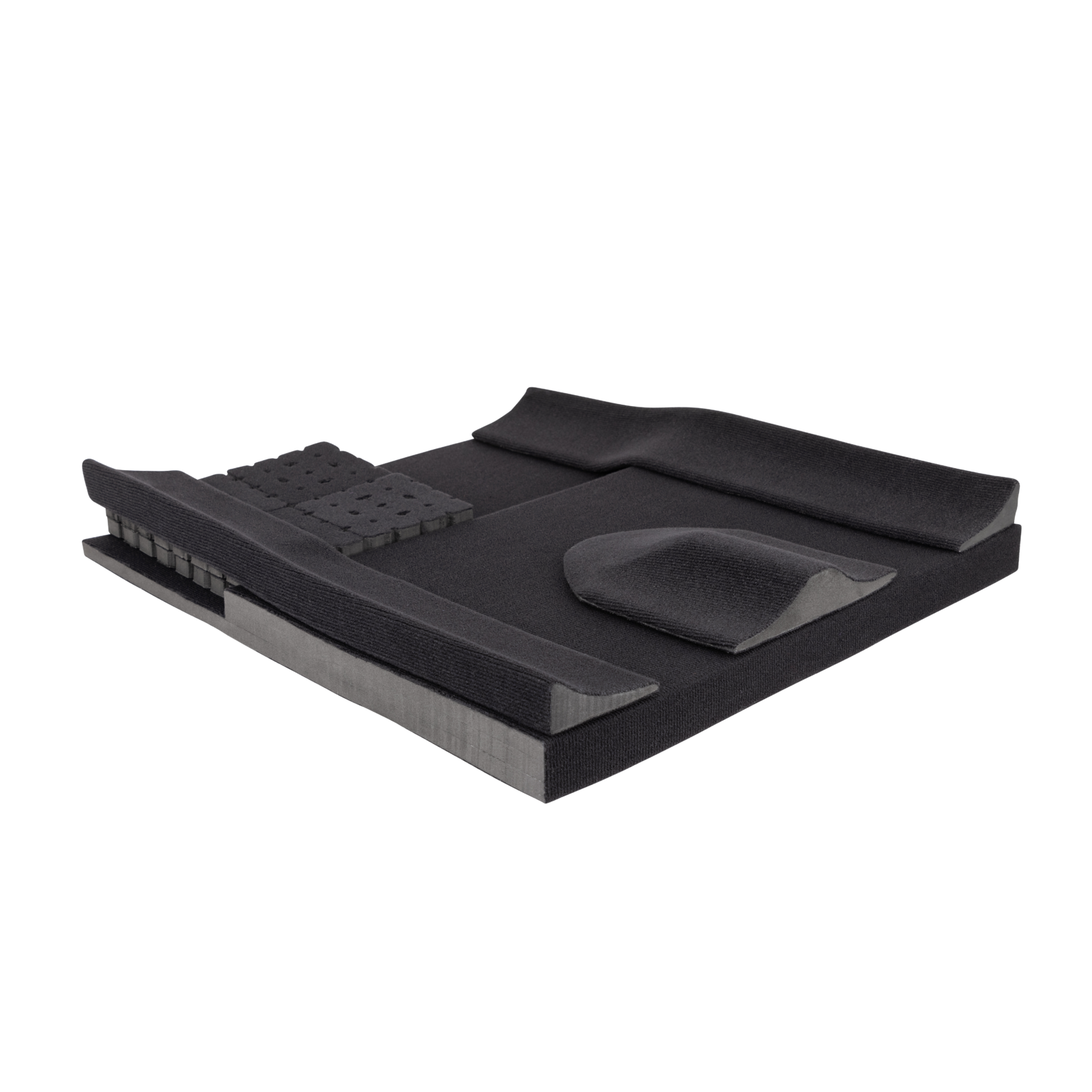 The Universal Positioning Base assists with these challenges by insertion under the air/gel cushion to configure the base system as per the user’s clinical assessment, to achieve a functional outcome for the user whilst not compromising with pressure care properties.