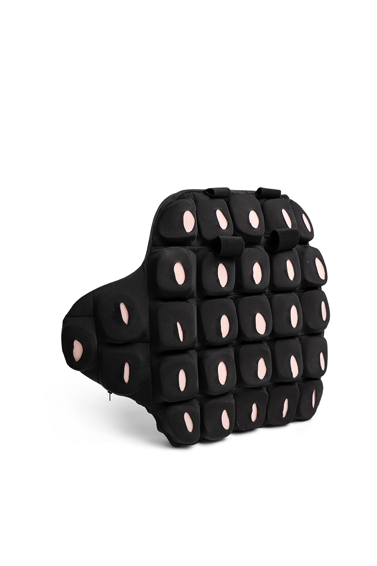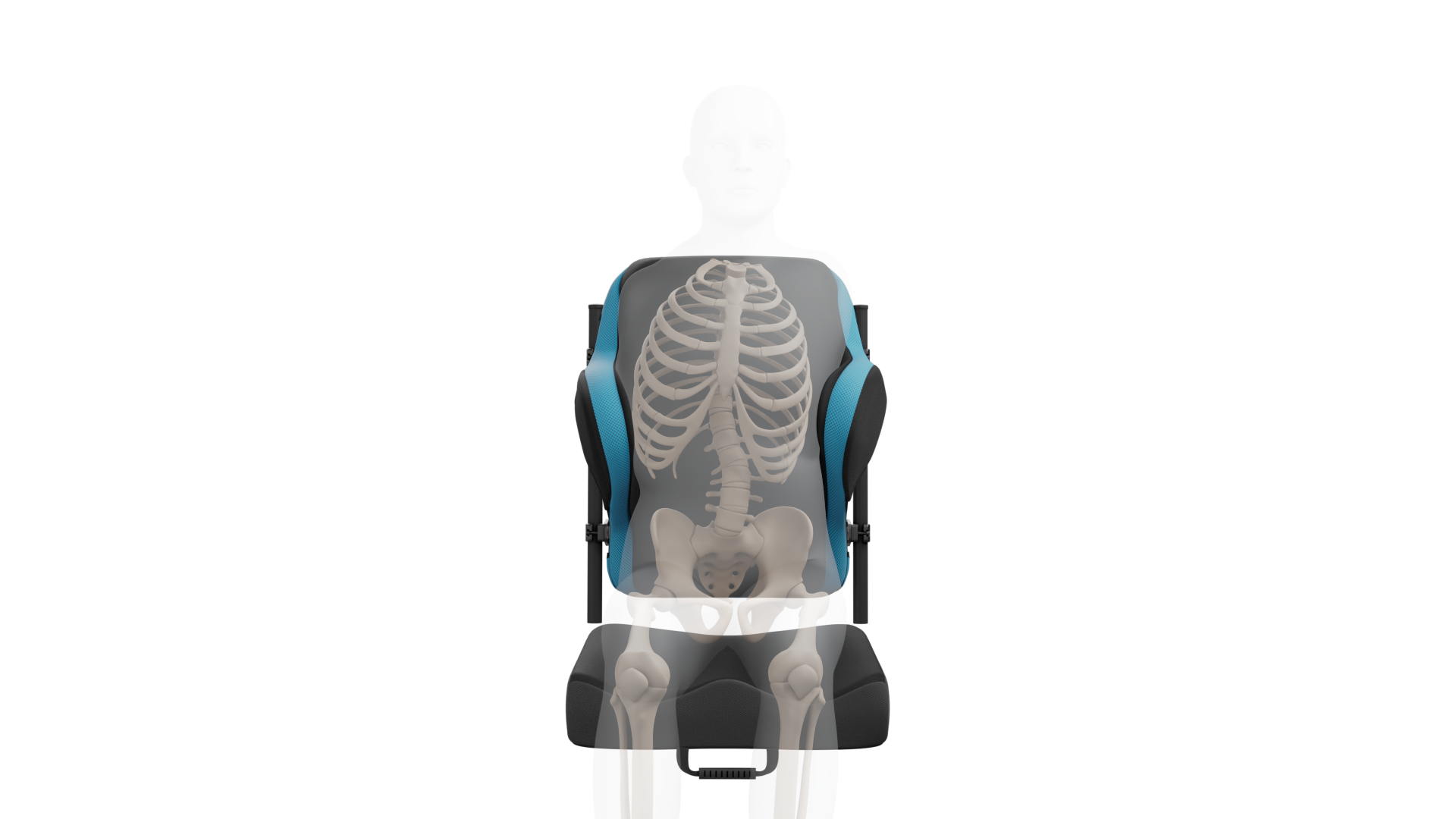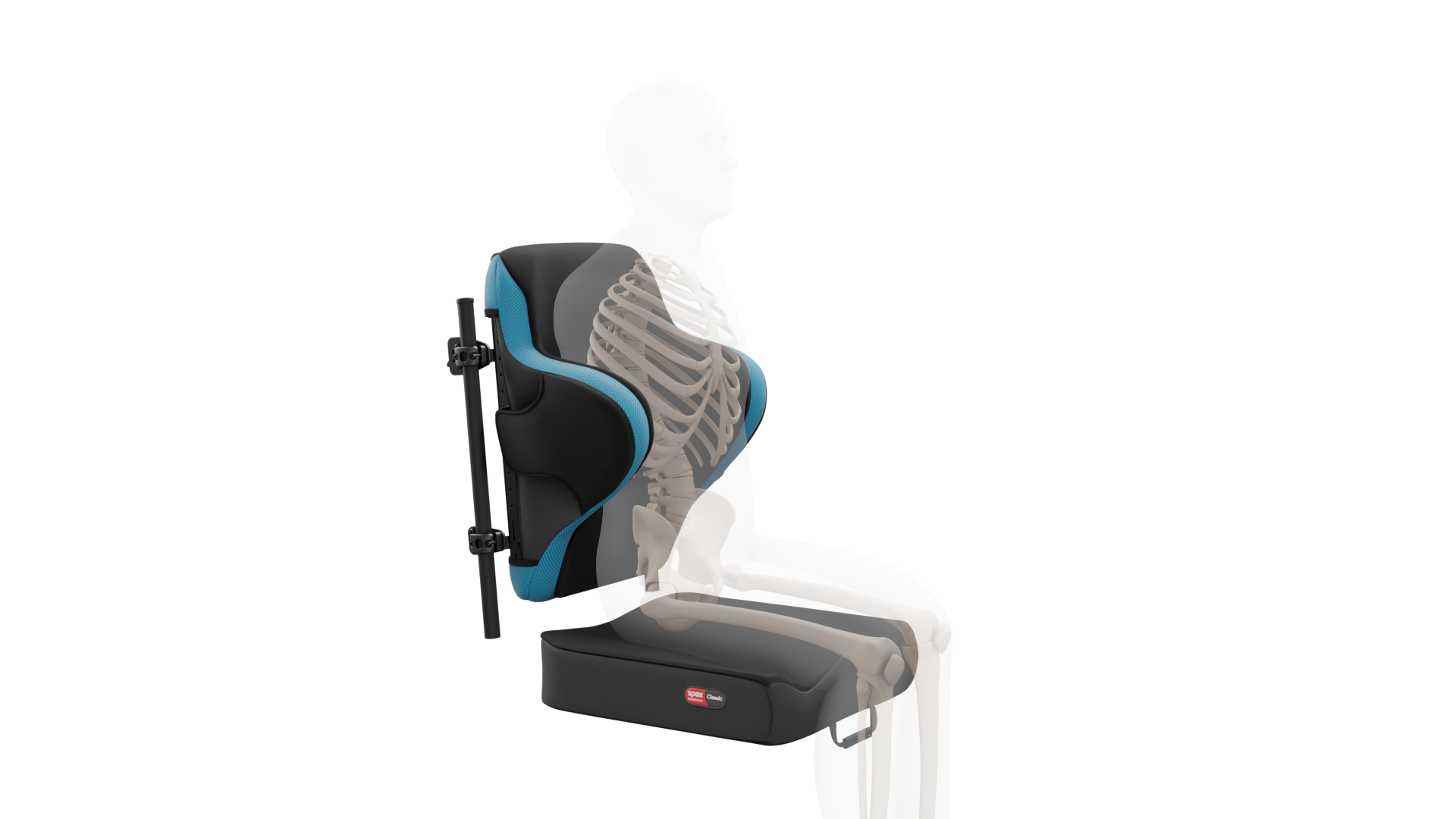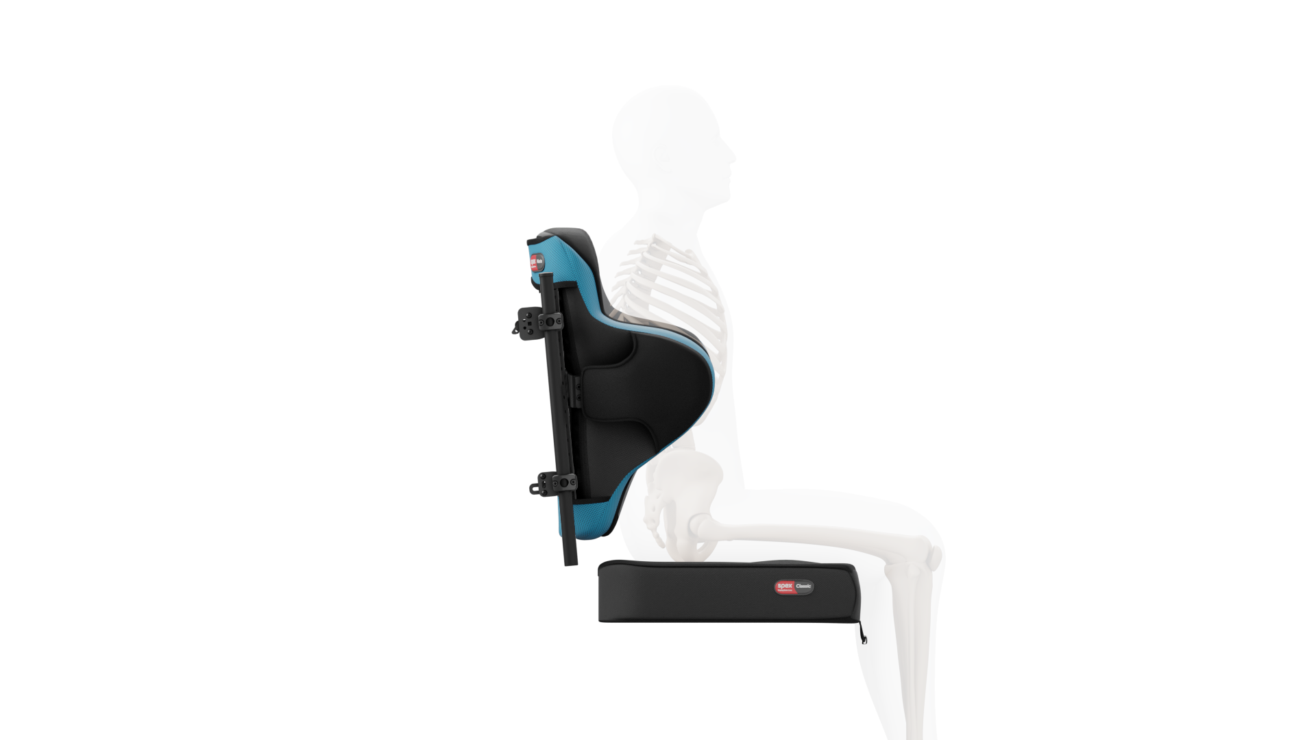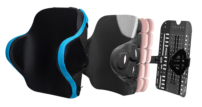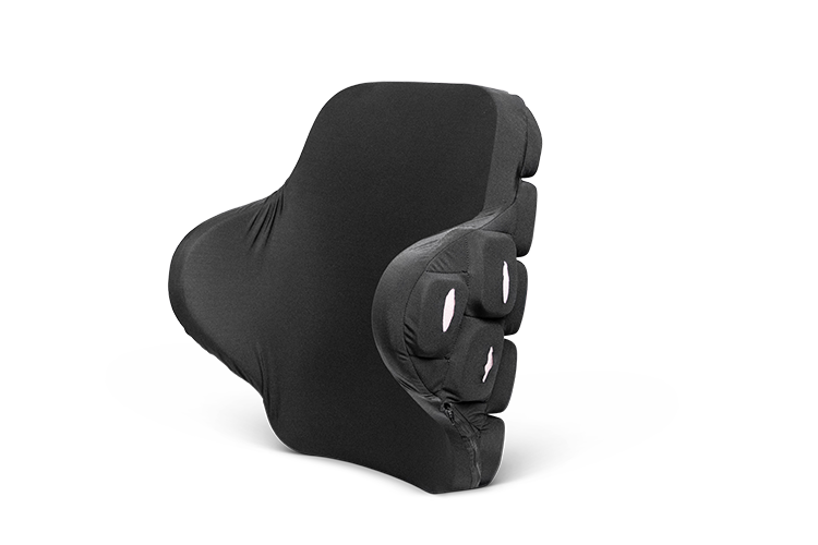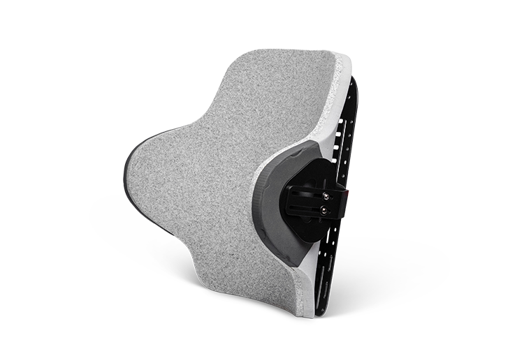 On the inside are built-in lateral trunk supports, a pressure-relieving foam inner and the ability to contour on the spot. On the outside, a soft, breathable cover hugs the whole back support, offering comfort and support to the user.