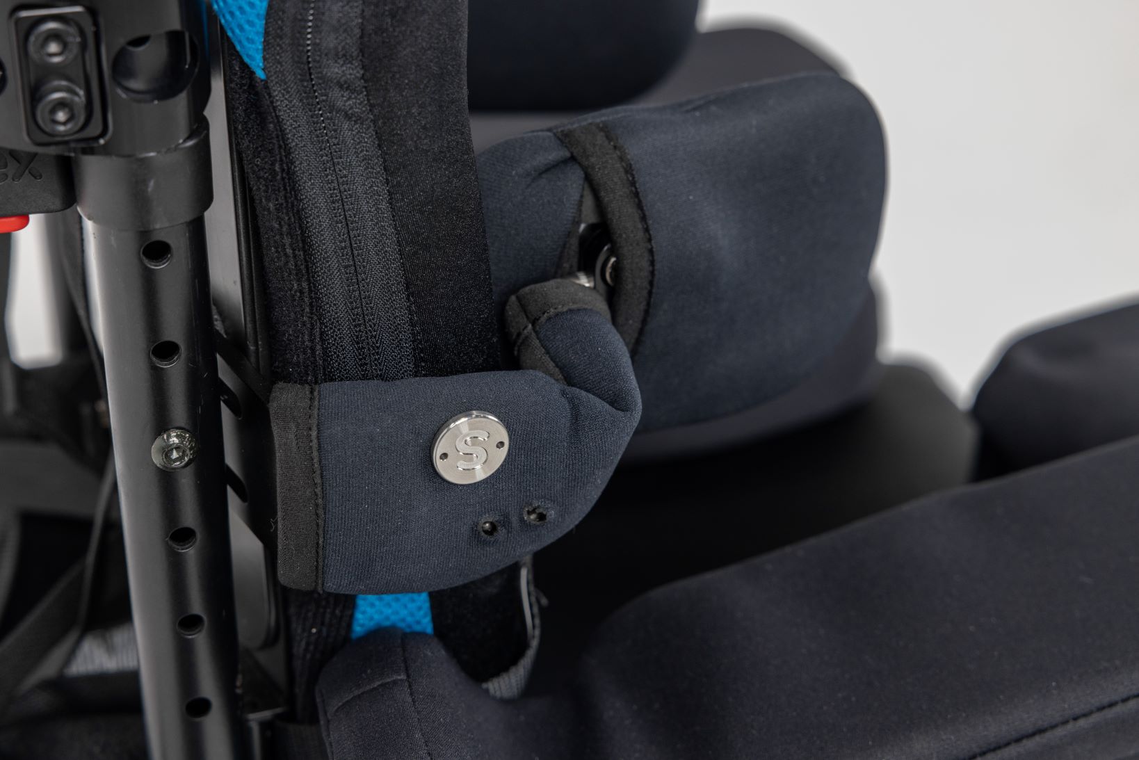 Positioning lateral supports can be tricky on paediatric wheelchairs where there is limited space for additional accessories and attachments. The Spex Paediatric Swing-Away Lateral Trunk Support has been specially designed with slim componentry, allowing for easier placement on smaller wheelchairs.