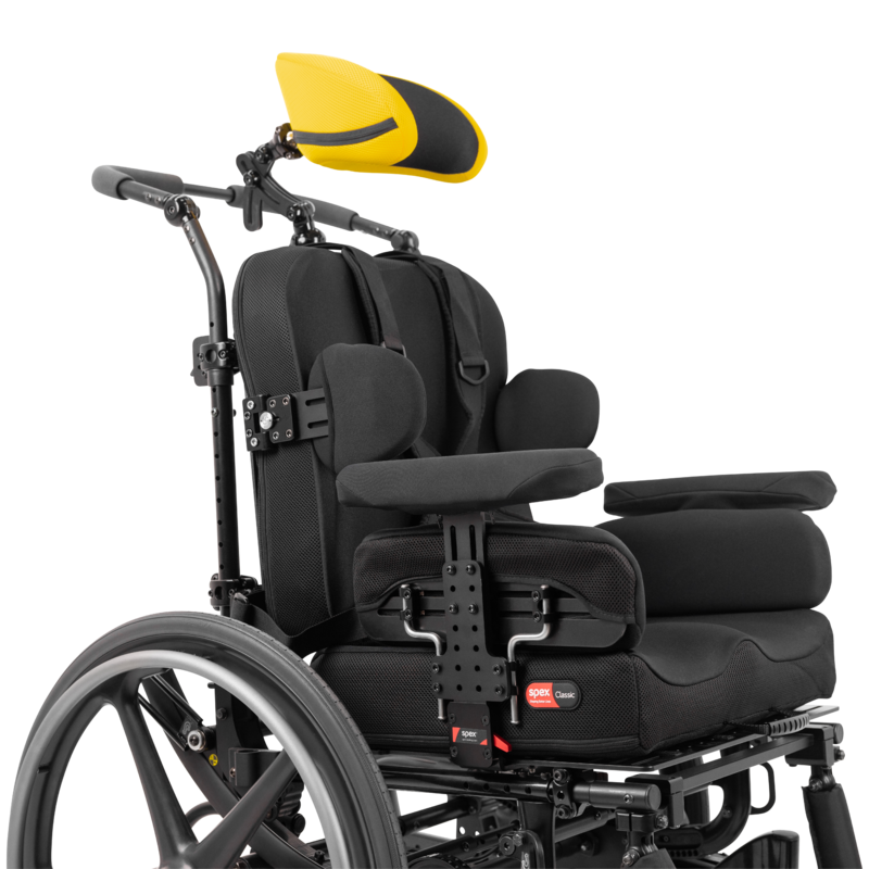 The contouring of the cushioning is essential to apply intimate surface contact to areas of the body that are contoured. The padded moulding structure is comprised of a three-layered Spex cube contouring substrate. The best result is achieved by creating areas of greater or lesser support with the adjustment of the multiple-layered padded pocket cells. We have developed 2 different densities of Spex cube cells in order to provide stability and comfort where it is needed. The SuperShape can adapt to changing needs and provide enough stability for complex and asymmetric postures