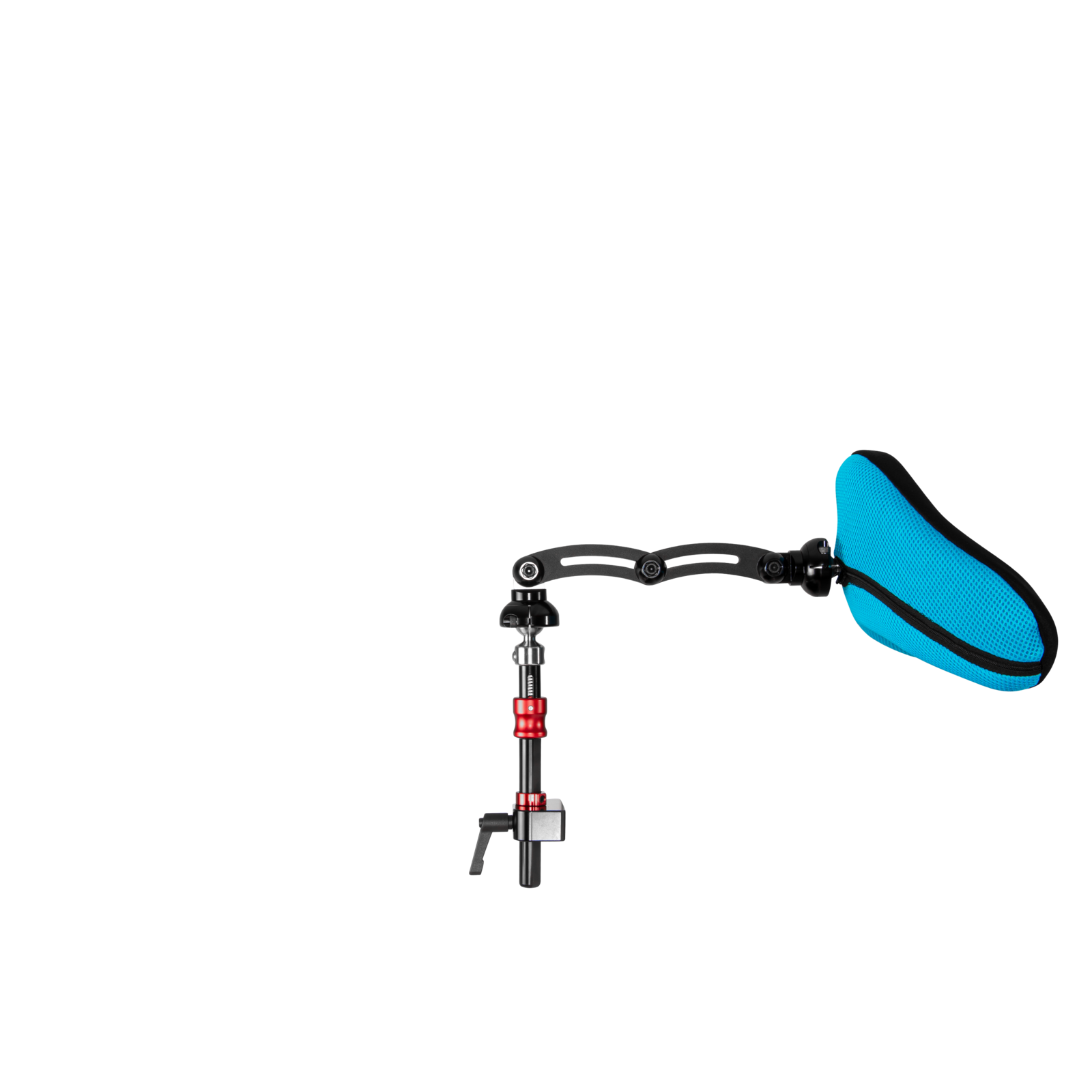 Similar to Stylo 160, clever use of twin ball joints means the head pad can be orientated to where the optimal support is required, through an available 45° of pitch; coupled with two hinge joints that offer infinite up and down, and forward and backward adjustment. In addition, it offers incredible reach with length-adjustable links.