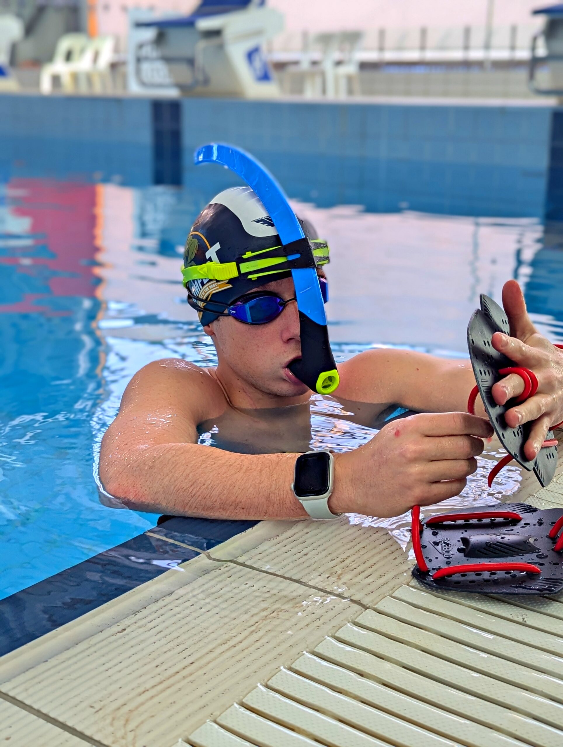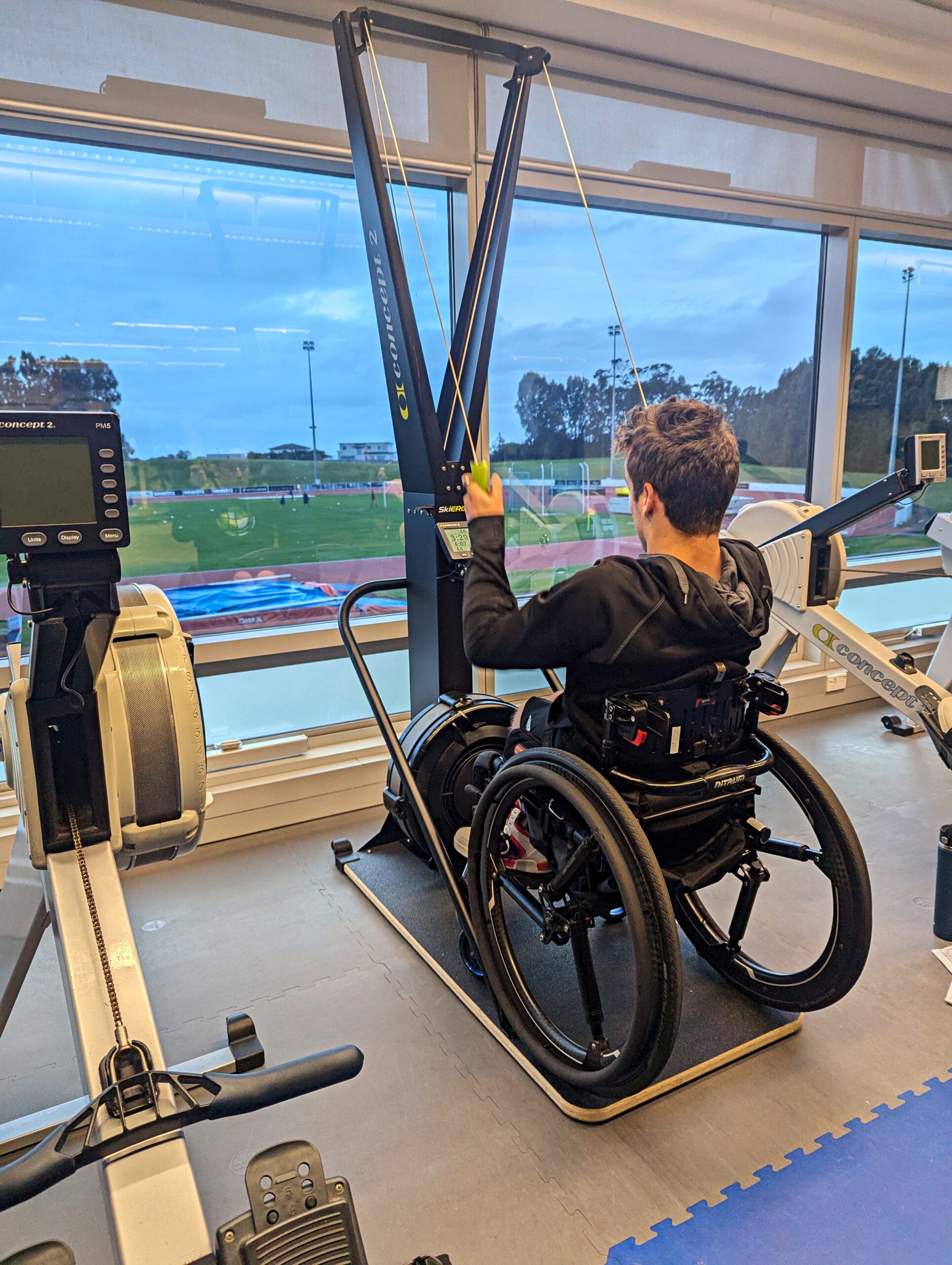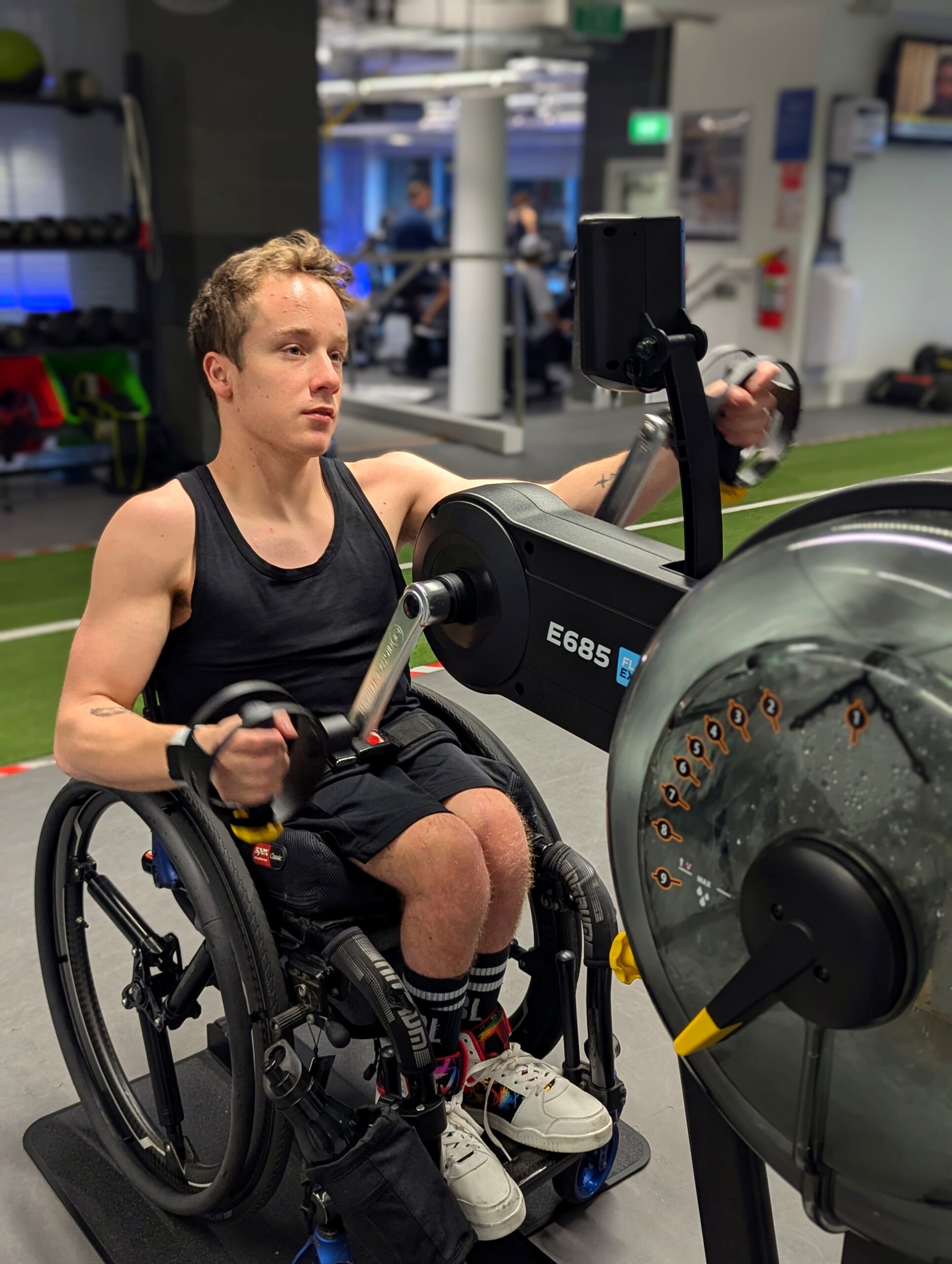 To minimize transfers from my day chair to the floor, I adapted my gym workouts to be performed in my chair. Using resistance bands and kettlebells, I focus on upper body strength and core stability. Adaptation is key to progress. Working with my team (track coaches, strength and conditioning coaches, nutritionist and physio), I’ve developed a rehabilitation plan that nurtures healing while maintaining strength. This journey isn’t about speed; it’s about steady, mindful progress. I’ve ventured into low-impact activities like swimming, which keep me active without straining my knee. When one door closes, another opens – sometimes in unexpected places.
