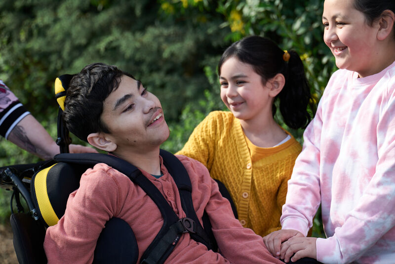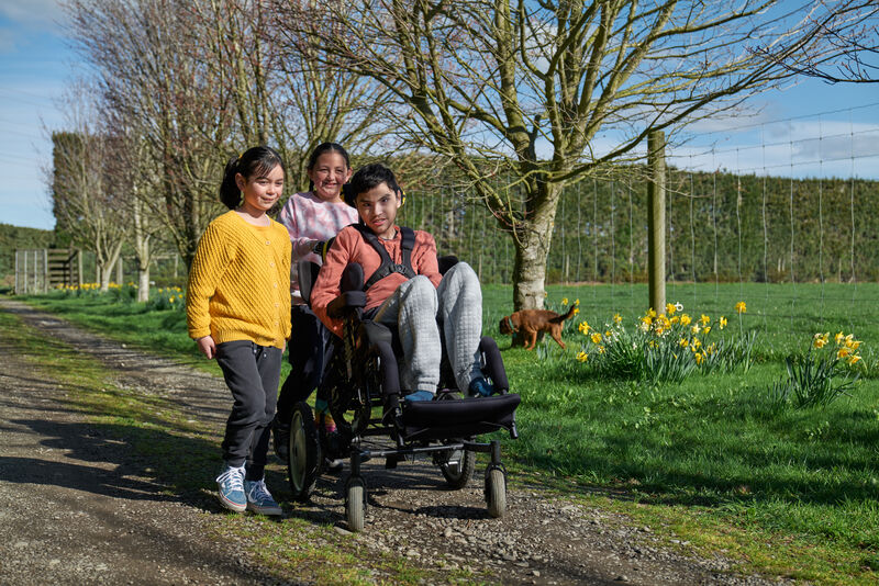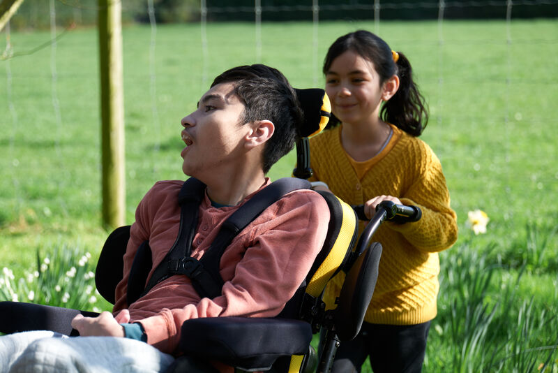 The 16” BMX-style knobbly tyres on his wheelchair make it easier to navigate different terrains and the iXpress attendant power assist control helps his carers manoeuvre his wheelchair.