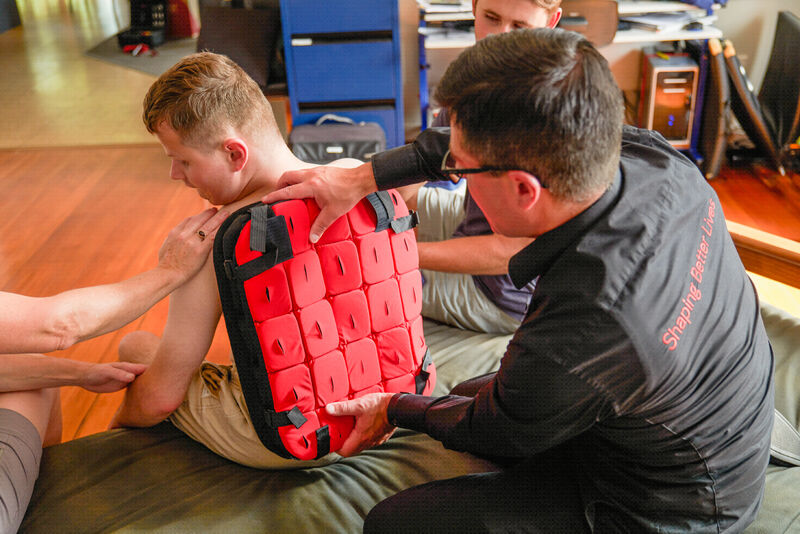 Callum has a Spex Biangular Lateral which is positioned at the apex of his scoliosis on his left side only, providing support and blocking his scoliosis from developing further. The biangular function of the lateral has supported both planes of his scoliosis and provided greater comfort.