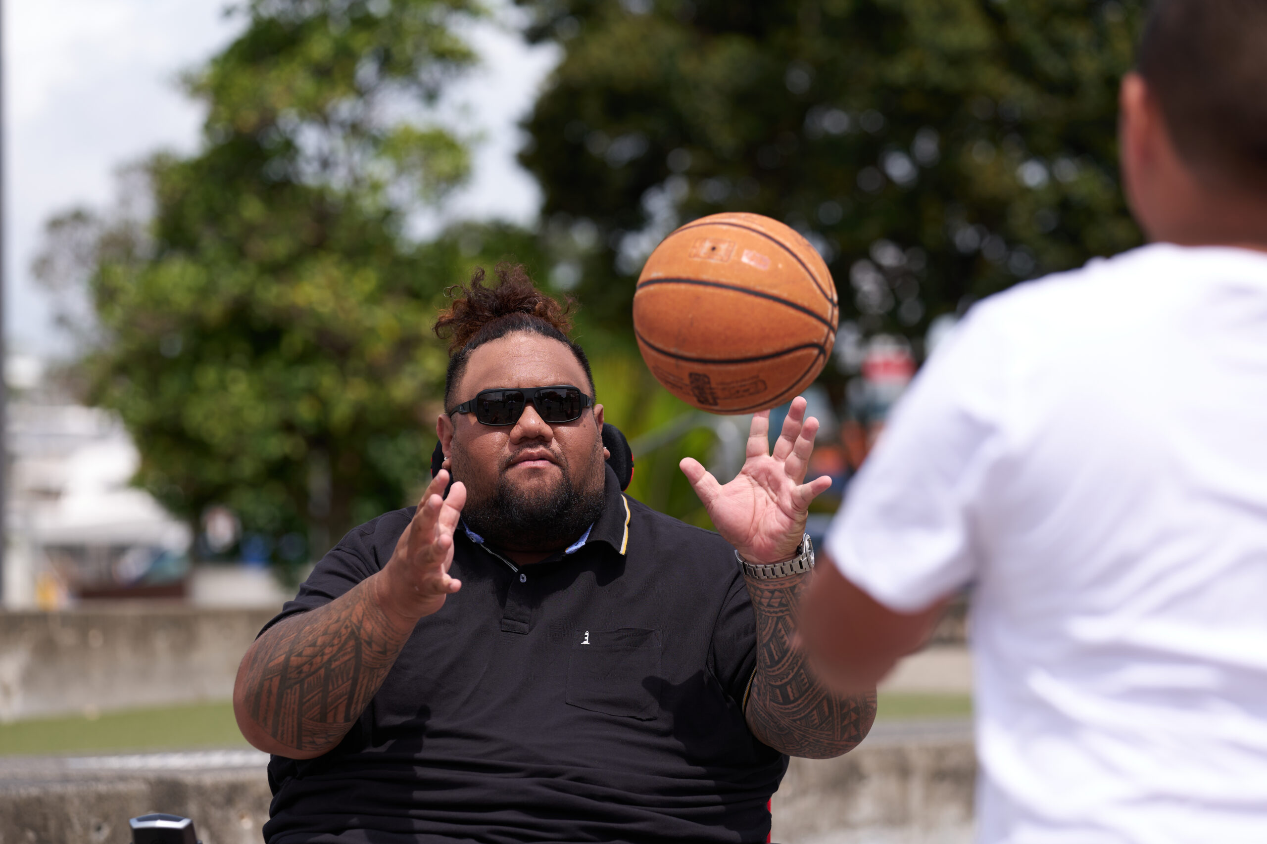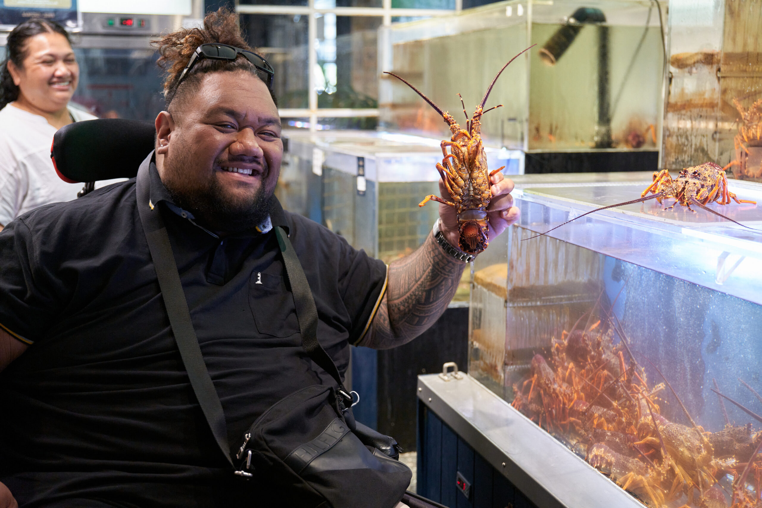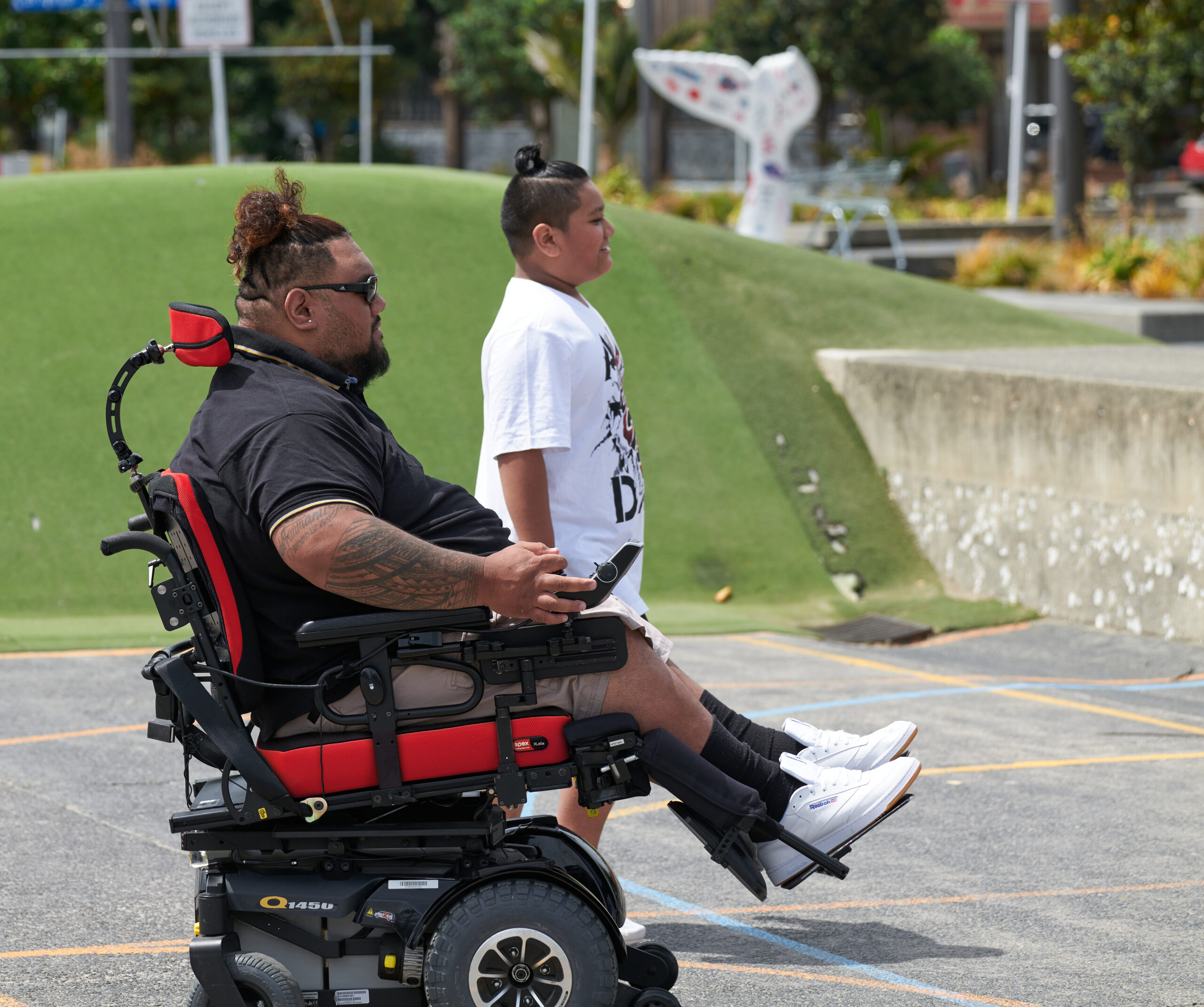 Taps spends long hours in the community with his family and being comfortable is his top priority. His wheelchair is fitted with an XLella2 bariatric back support which empowers him to get out and about to do the things he loves, as he describes below: